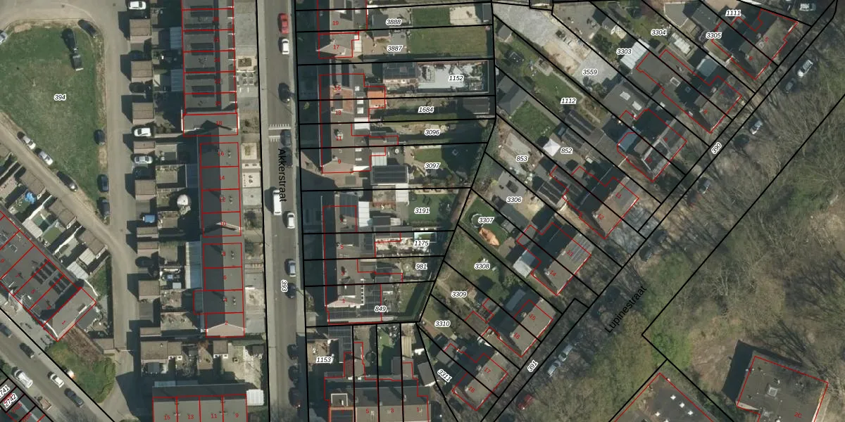 Gebruik de zoekbalk of klik op een perceel om informatie over het perceel te bekijken.