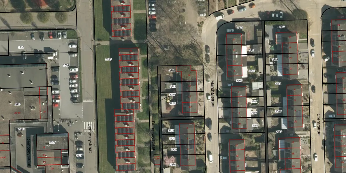 Gebruik de zoekbalk of klik op een perceel om informatie over het perceel te bekijken.