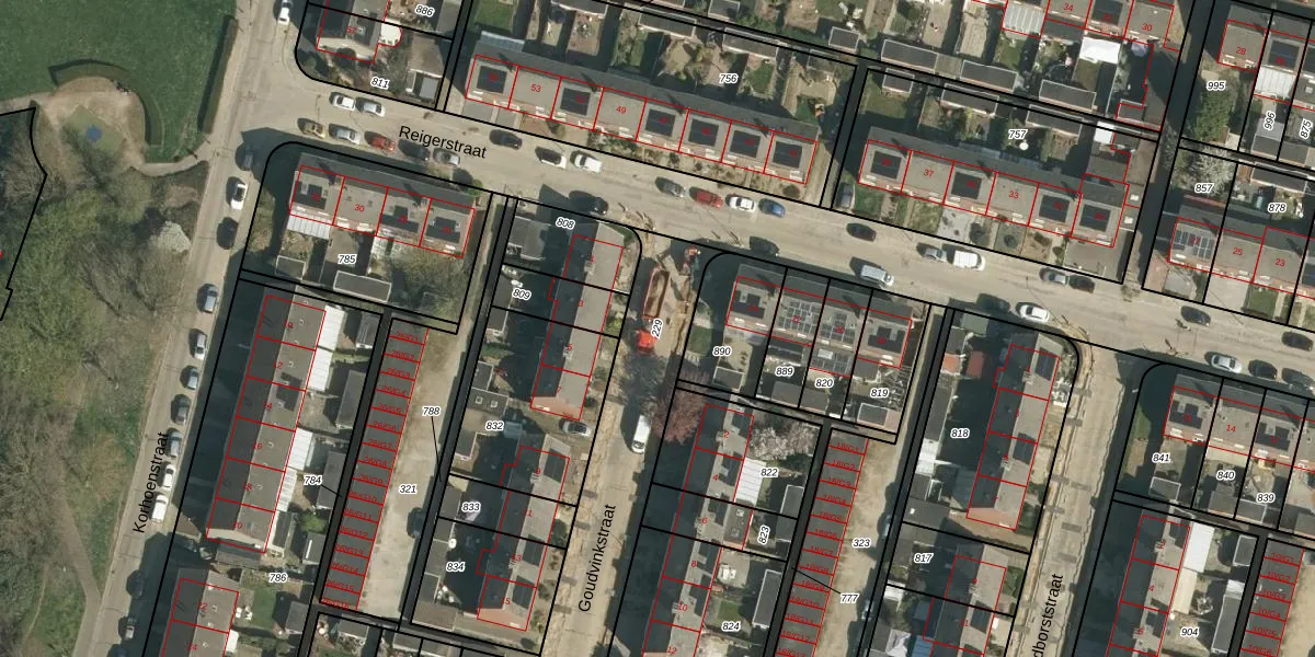 Gebruik de zoekbalk of klik op een perceel om informatie over het perceel te bekijken.