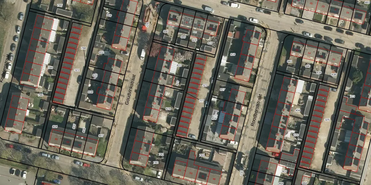 Gebruik de zoekbalk of klik op een perceel om informatie over het perceel te bekijken.