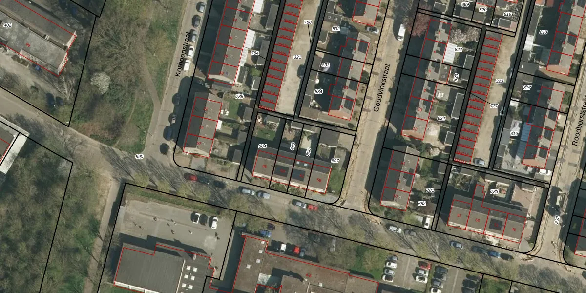 Gebruik de zoekbalk of klik op een perceel om informatie over het perceel te bekijken.