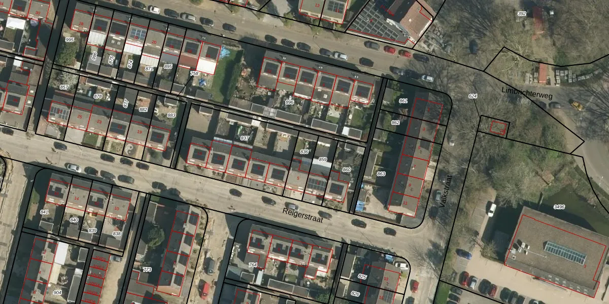 Gebruik de zoekbalk of klik op een perceel om informatie over het perceel te bekijken.