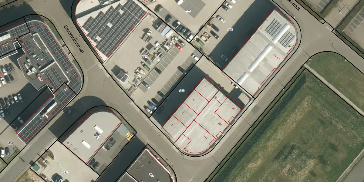 Gebruik de zoekbalk of klik op een perceel om informatie over het perceel te bekijken.