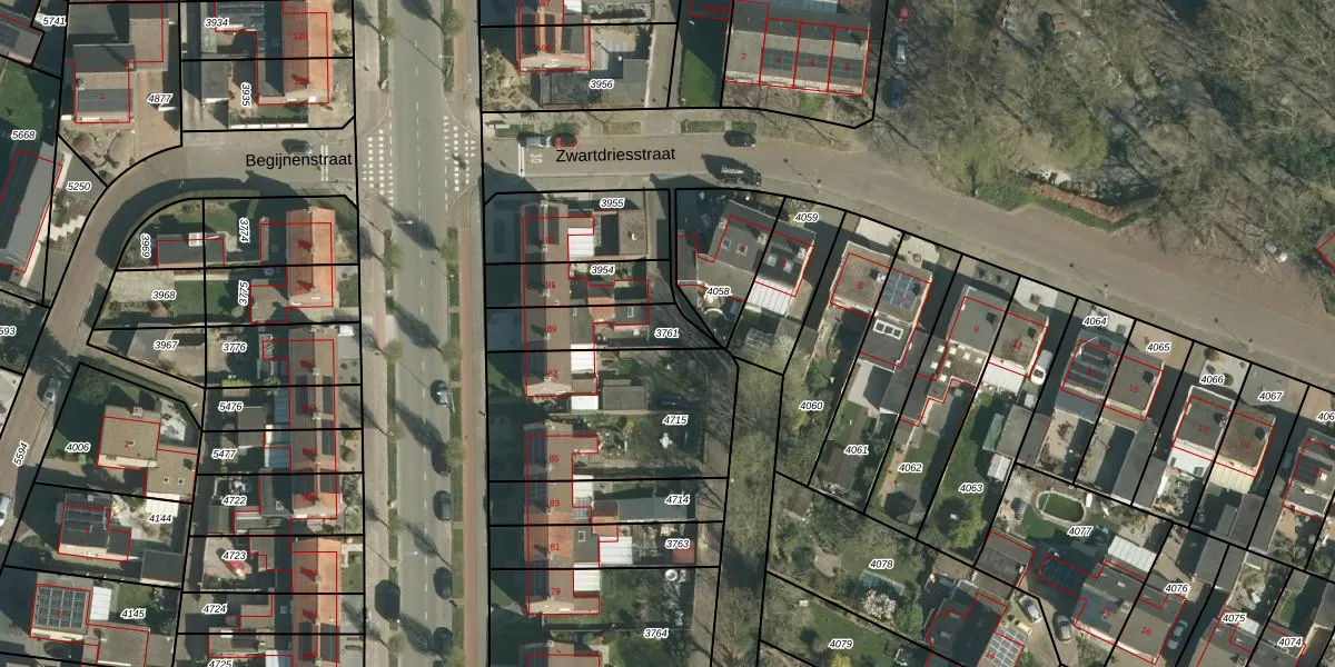 Gebruik de zoekbalk of klik op een perceel om informatie over het perceel te bekijken.