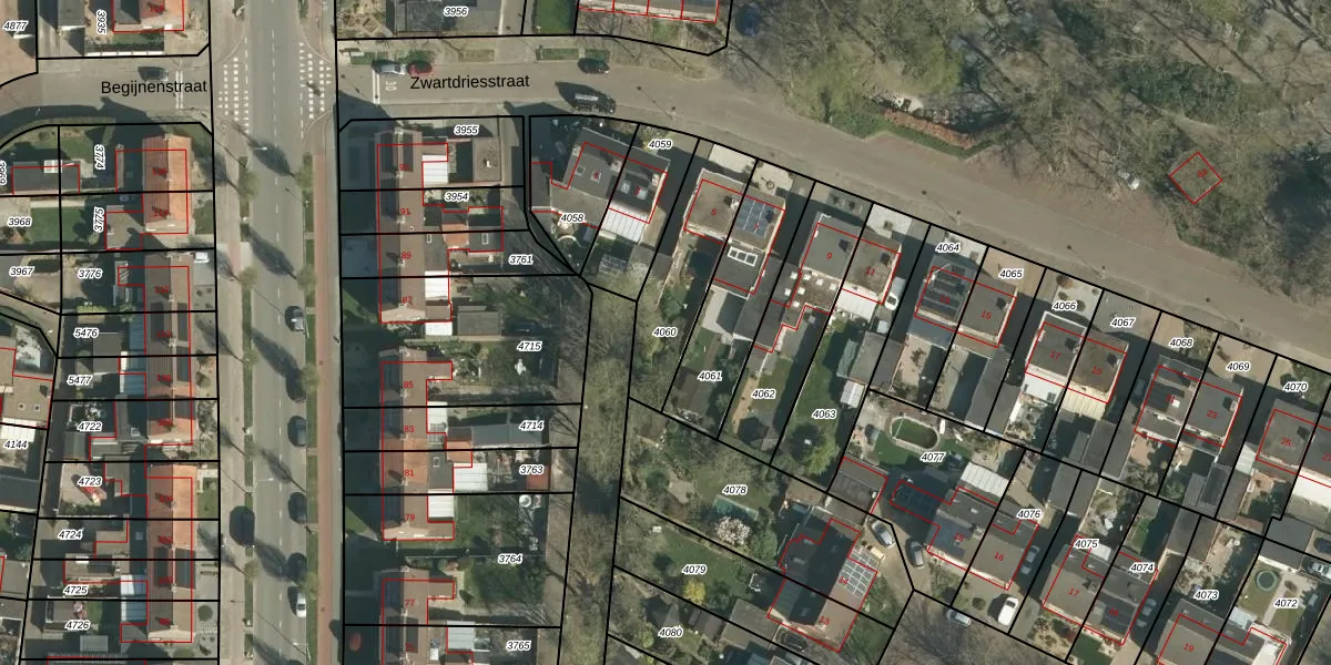 Gebruik de zoekbalk of klik op een perceel om informatie over het perceel te bekijken.