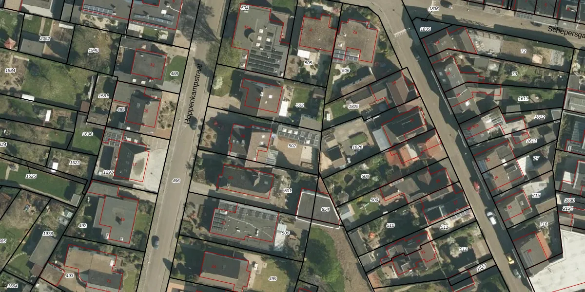 Gebruik de zoekbalk of klik op een perceel om informatie over het perceel te bekijken.