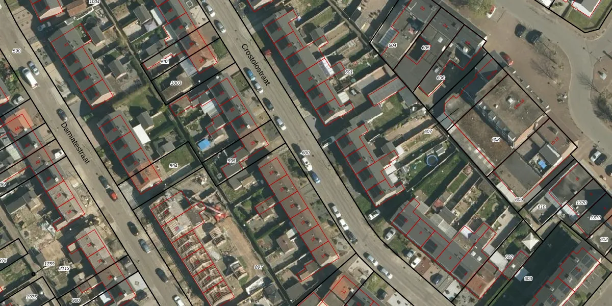Gebruik de zoekbalk of klik op een perceel om informatie over het perceel te bekijken.