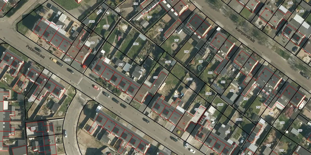 Gebruik de zoekbalk of klik op een perceel om informatie over het perceel te bekijken.