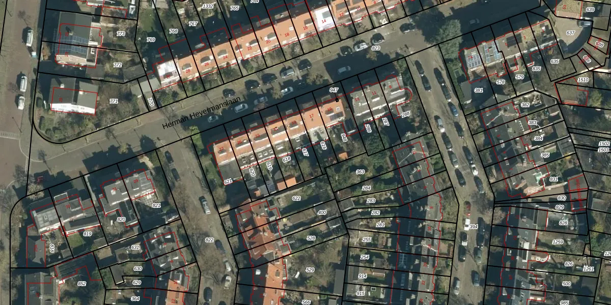 Gebruik de zoekbalk of klik op een perceel om informatie over het perceel te bekijken.