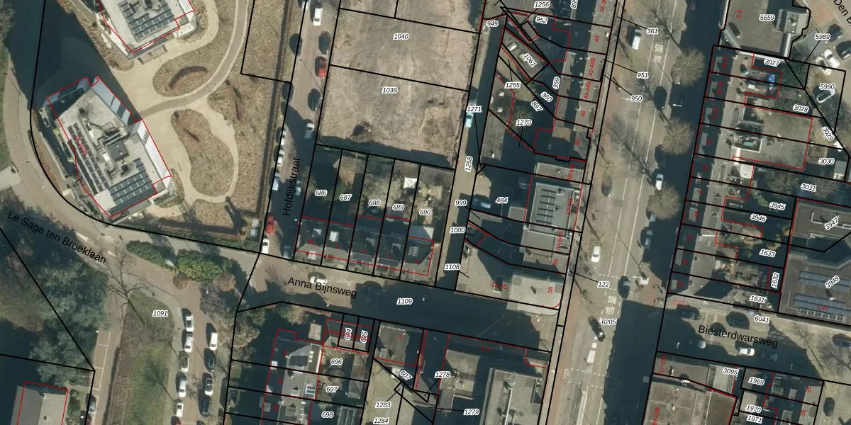 Gebruik de zoekbalk of klik op een perceel om informatie over het perceel te bekijken.