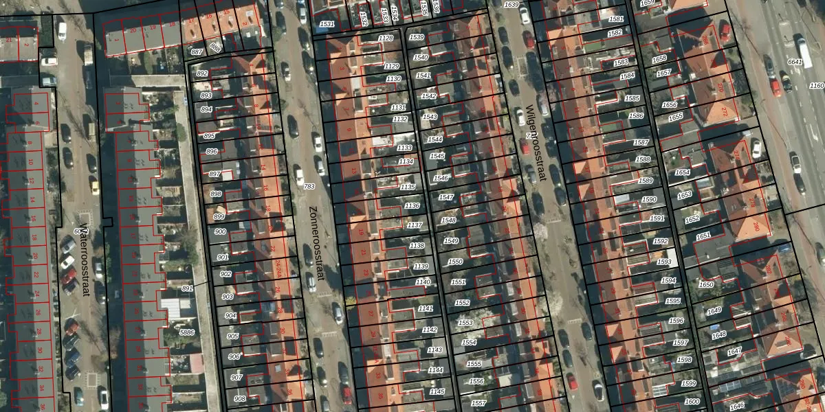 Gebruik de zoekbalk of klik op een perceel om informatie over het perceel te bekijken.