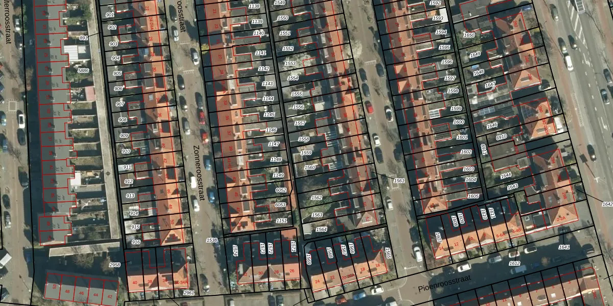 Gebruik de zoekbalk of klik op een perceel om informatie over het perceel te bekijken.
