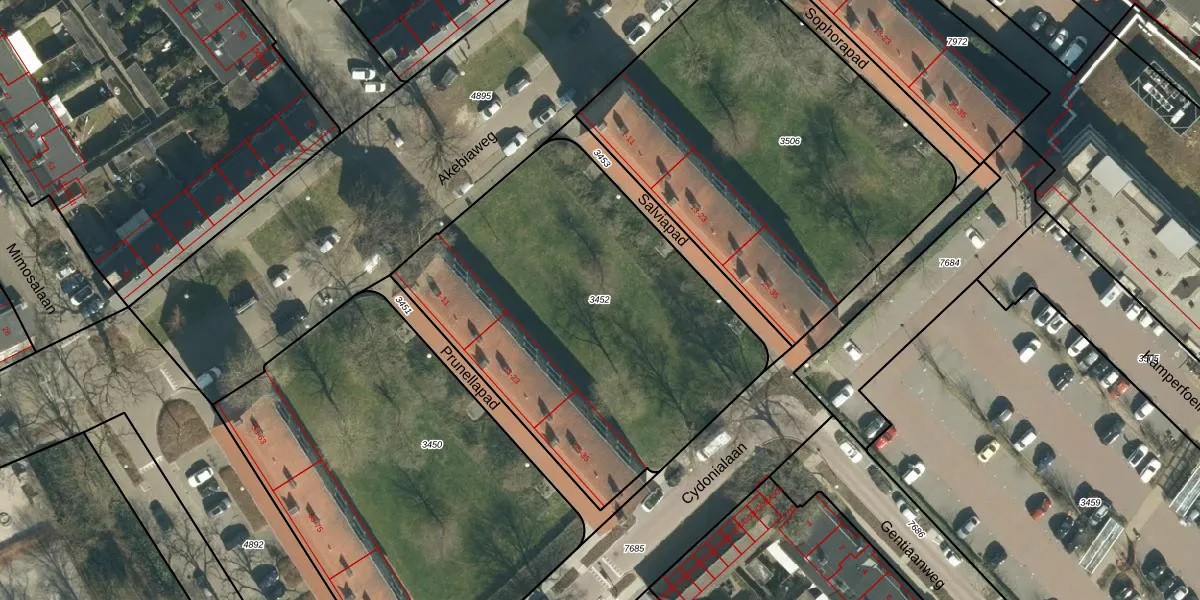 Gebruik de zoekbalk of klik op een perceel om informatie over het perceel te bekijken.