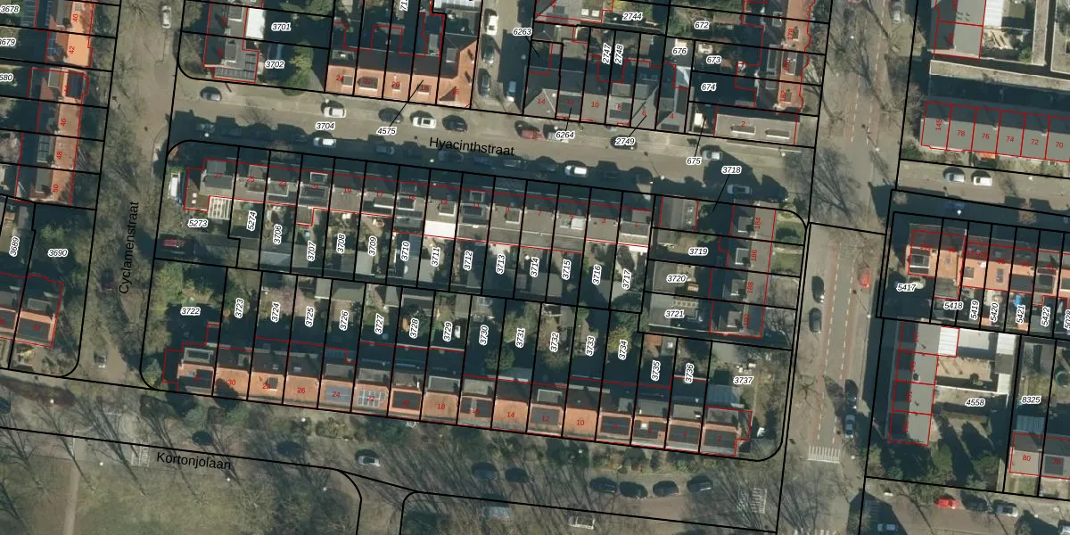 Gebruik de zoekbalk of klik op een perceel om informatie over het perceel te bekijken.