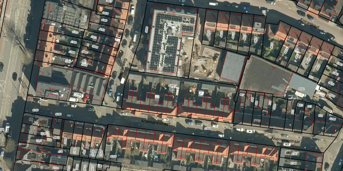 Gebruik de zoekbalk of klik op een perceel om informatie over het perceel te bekijken.