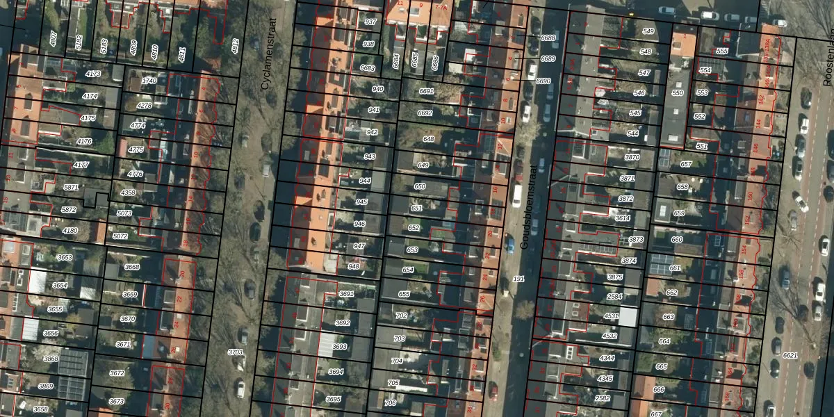 Gebruik de zoekbalk of klik op een perceel om informatie over het perceel te bekijken.