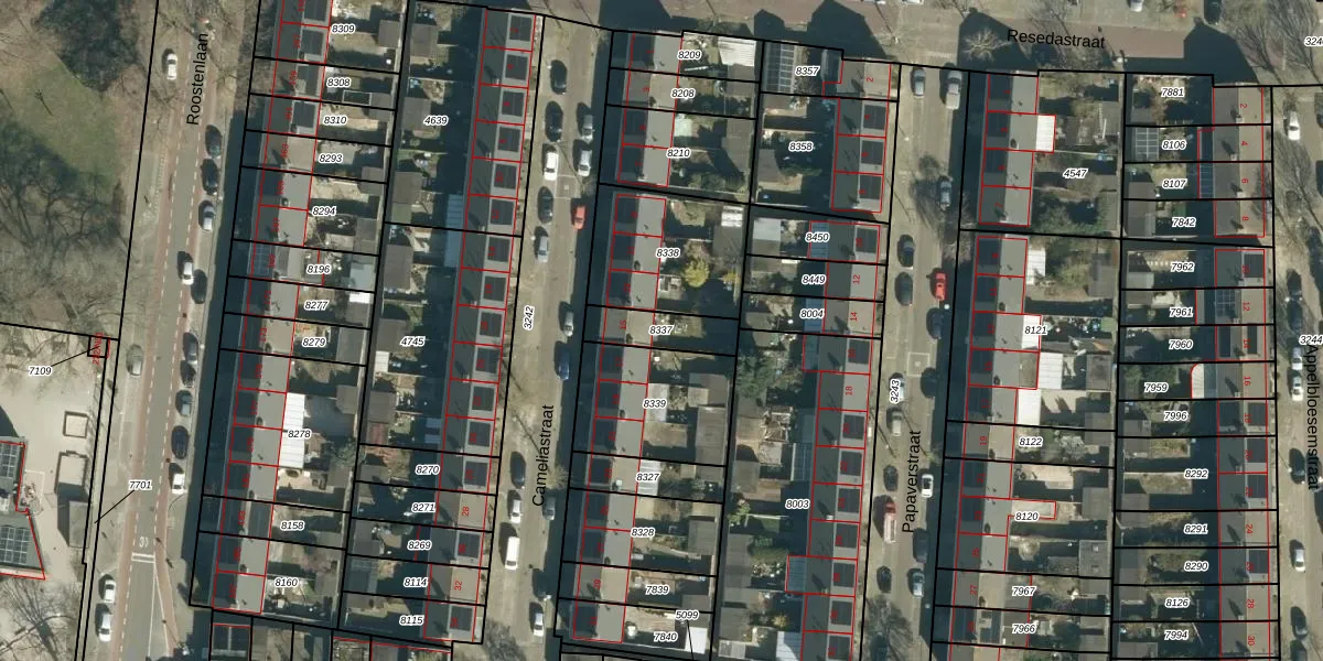 Gebruik de zoekbalk of klik op een perceel om informatie over het perceel te bekijken.