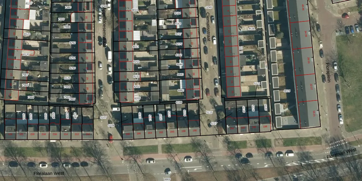 Gebruik de zoekbalk of klik op een perceel om informatie over het perceel te bekijken.
