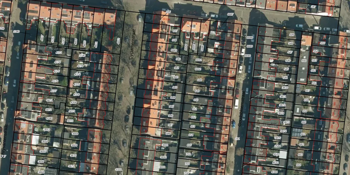 Gebruik de zoekbalk of klik op een perceel om informatie over het perceel te bekijken.