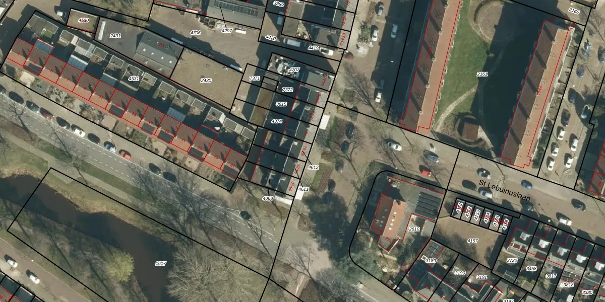 Gebruik de zoekbalk of klik op een perceel om informatie over het perceel te bekijken.