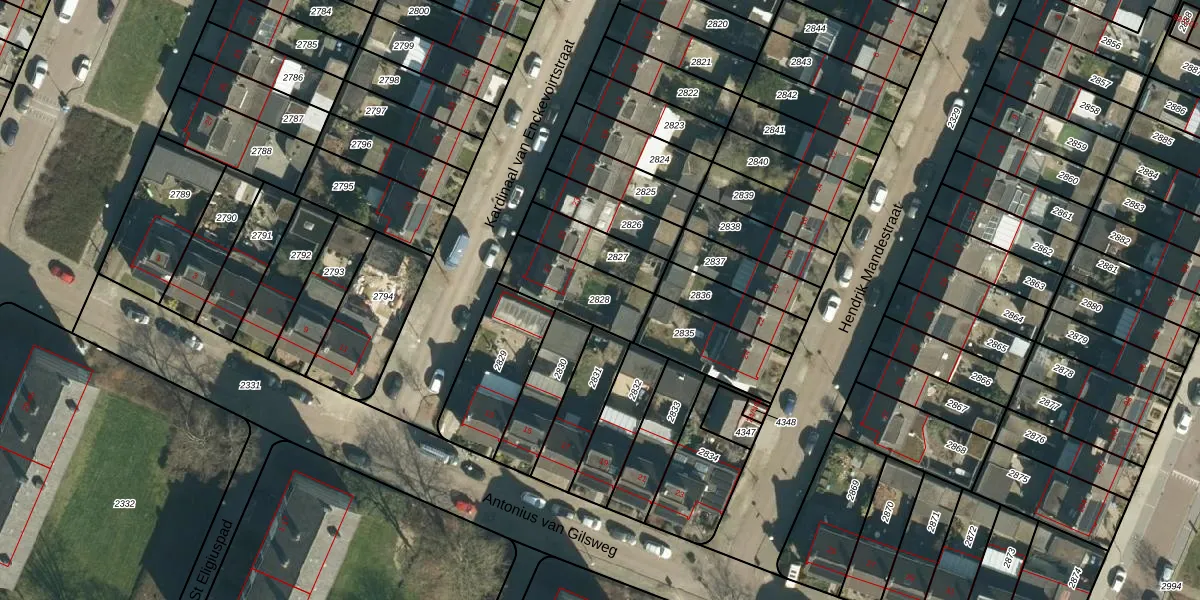 Gebruik de zoekbalk of klik op een perceel om informatie over het perceel te bekijken.