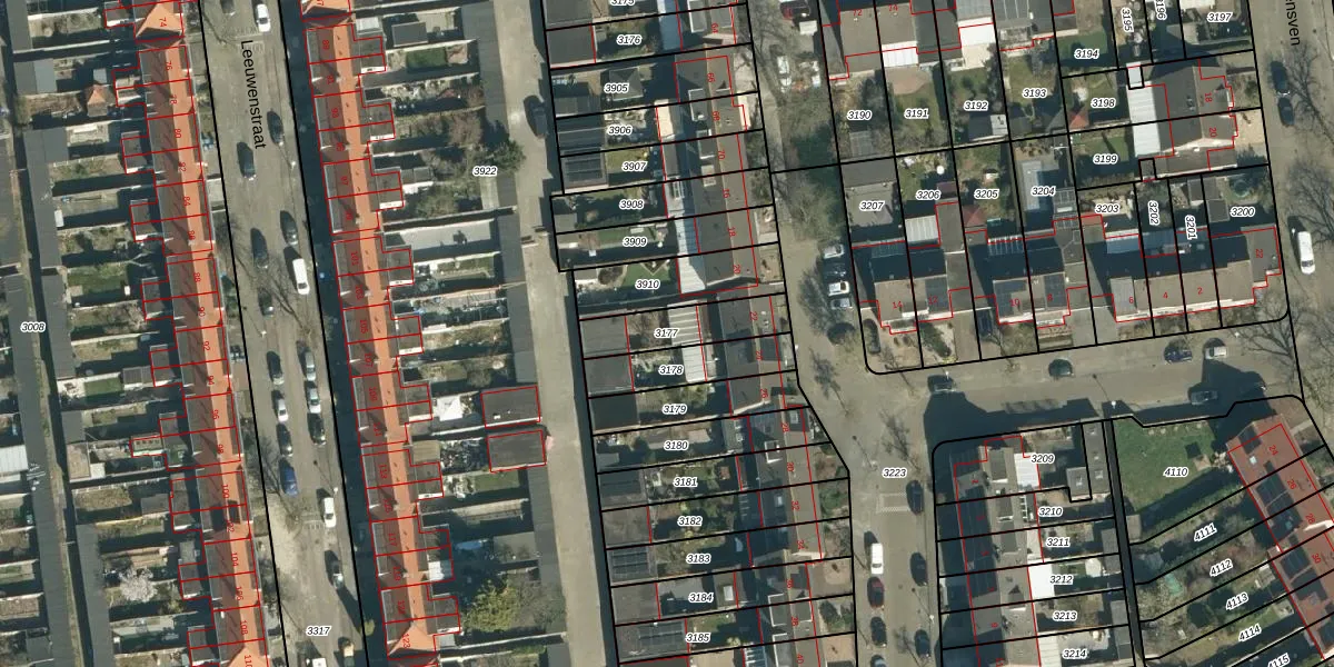 Gebruik de zoekbalk of klik op een perceel om informatie over het perceel te bekijken.