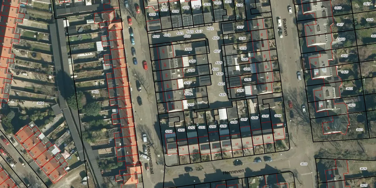 Gebruik de zoekbalk of klik op een perceel om informatie over het perceel te bekijken.