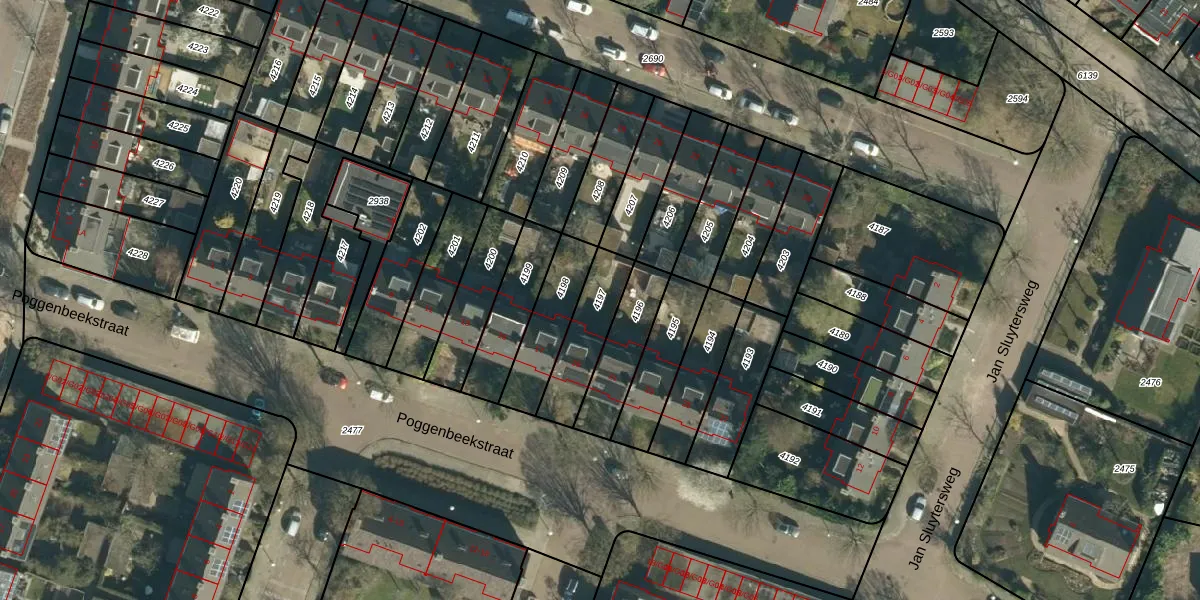 Gebruik de zoekbalk of klik op een perceel om informatie over het perceel te bekijken.