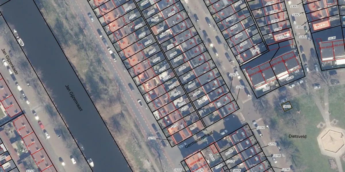 Gebruik de zoekbalk of klik op een perceel om informatie over het perceel te bekijken.