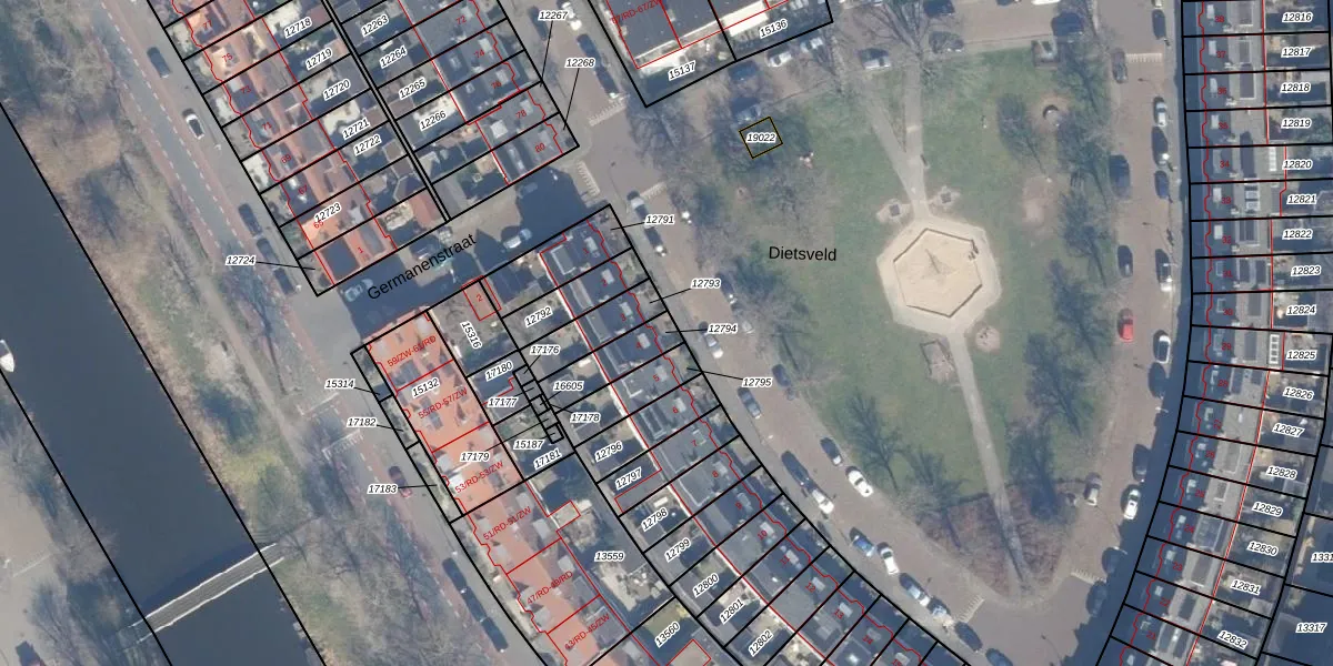 Gebruik de zoekbalk of klik op een perceel om informatie over het perceel te bekijken.
