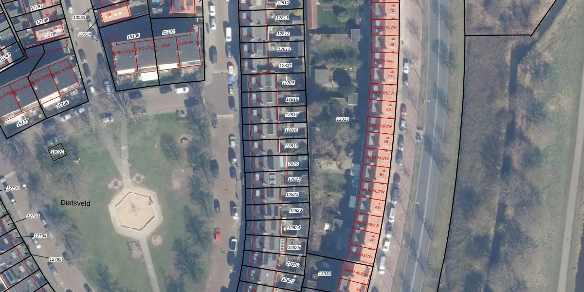 Gebruik de zoekbalk of klik op een perceel om informatie over het perceel te bekijken.