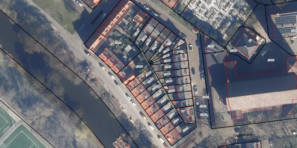 Gebruik de zoekbalk of klik op een perceel om informatie over het perceel te bekijken.