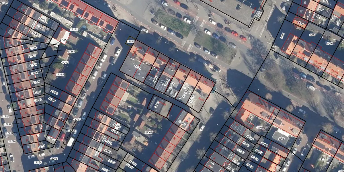 Gebruik de zoekbalk of klik op een perceel om informatie over het perceel te bekijken.