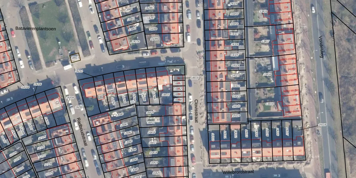 Gebruik de zoekbalk of klik op een perceel om informatie over het perceel te bekijken.