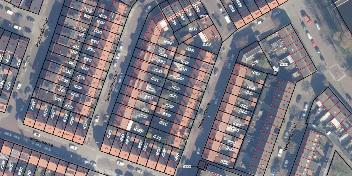 Gebruik de zoekbalk of klik op een perceel om informatie over het perceel te bekijken.