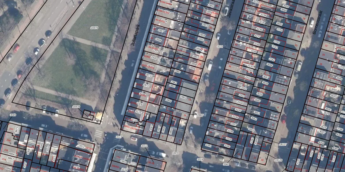 Gebruik de zoekbalk of klik op een perceel om informatie over het perceel te bekijken.