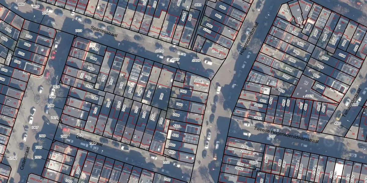 Gebruik de zoekbalk of klik op een perceel om informatie over het perceel te bekijken.