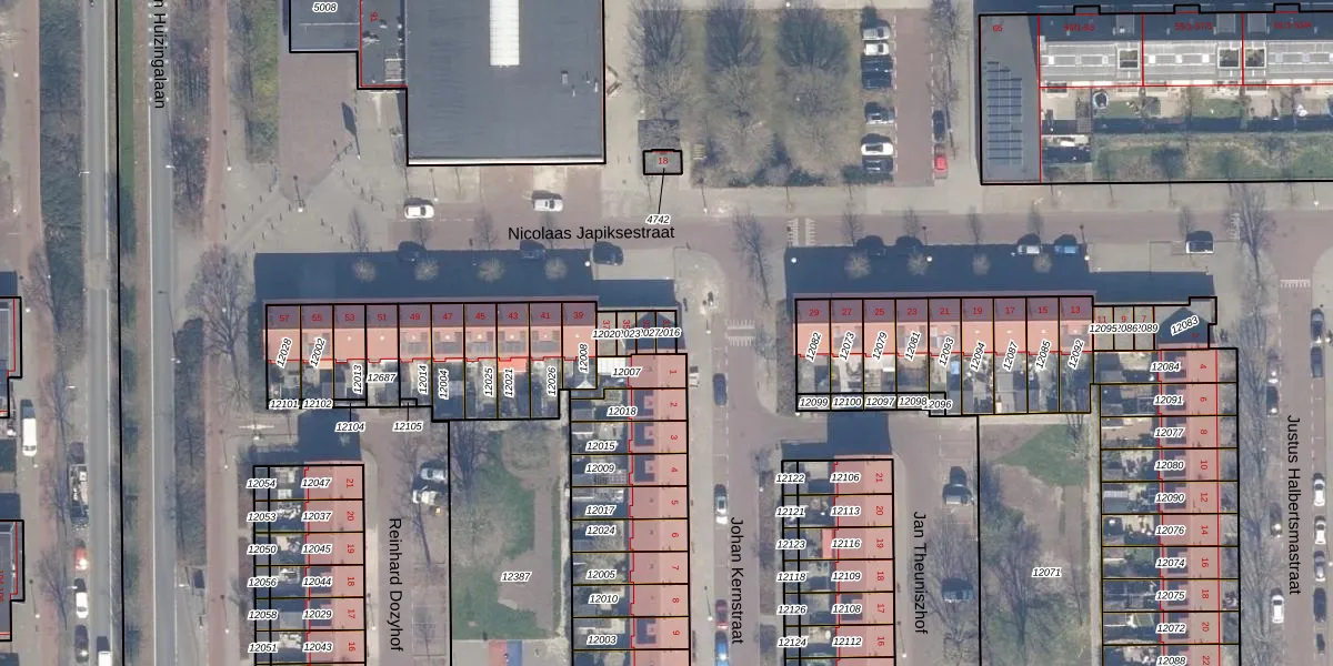 Gebruik de zoekbalk of klik op een perceel om informatie over het perceel te bekijken.