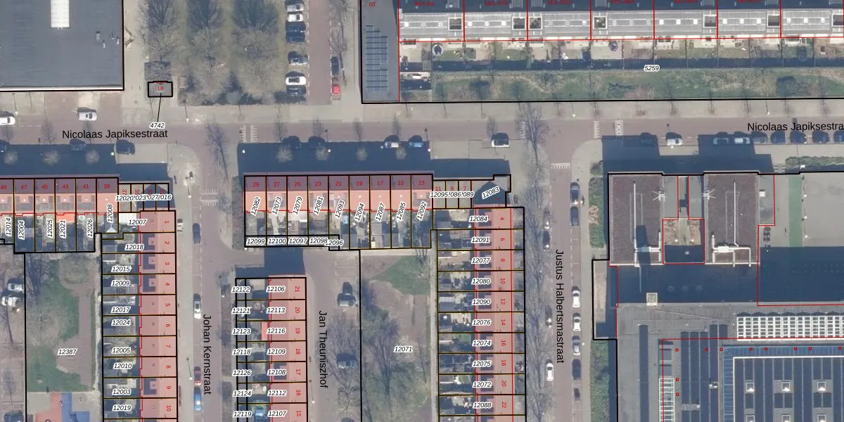 Gebruik de zoekbalk of klik op een perceel om informatie over het perceel te bekijken.