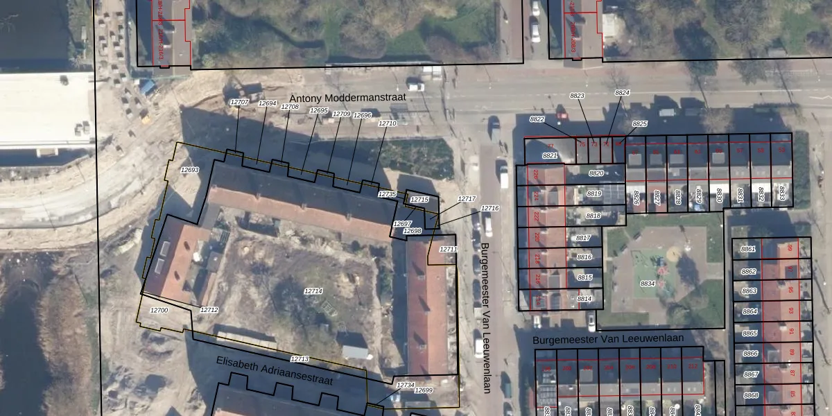 Gebruik de zoekbalk of klik op een perceel om informatie over het perceel te bekijken.