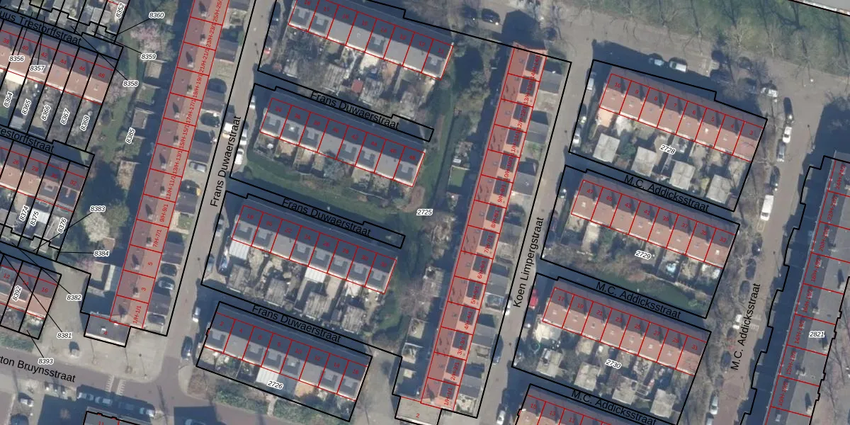 Gebruik de zoekbalk of klik op een perceel om informatie over het perceel te bekijken.