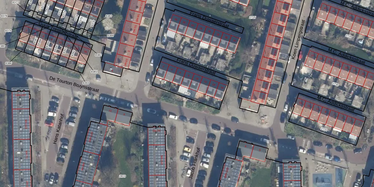 Gebruik de zoekbalk of klik op een perceel om informatie over het perceel te bekijken.
