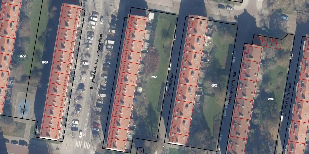 Gebruik de zoekbalk of klik op een perceel om informatie over het perceel te bekijken.