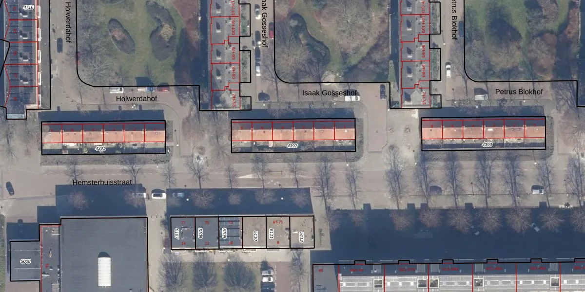 Gebruik de zoekbalk of klik op een perceel om informatie over het perceel te bekijken.