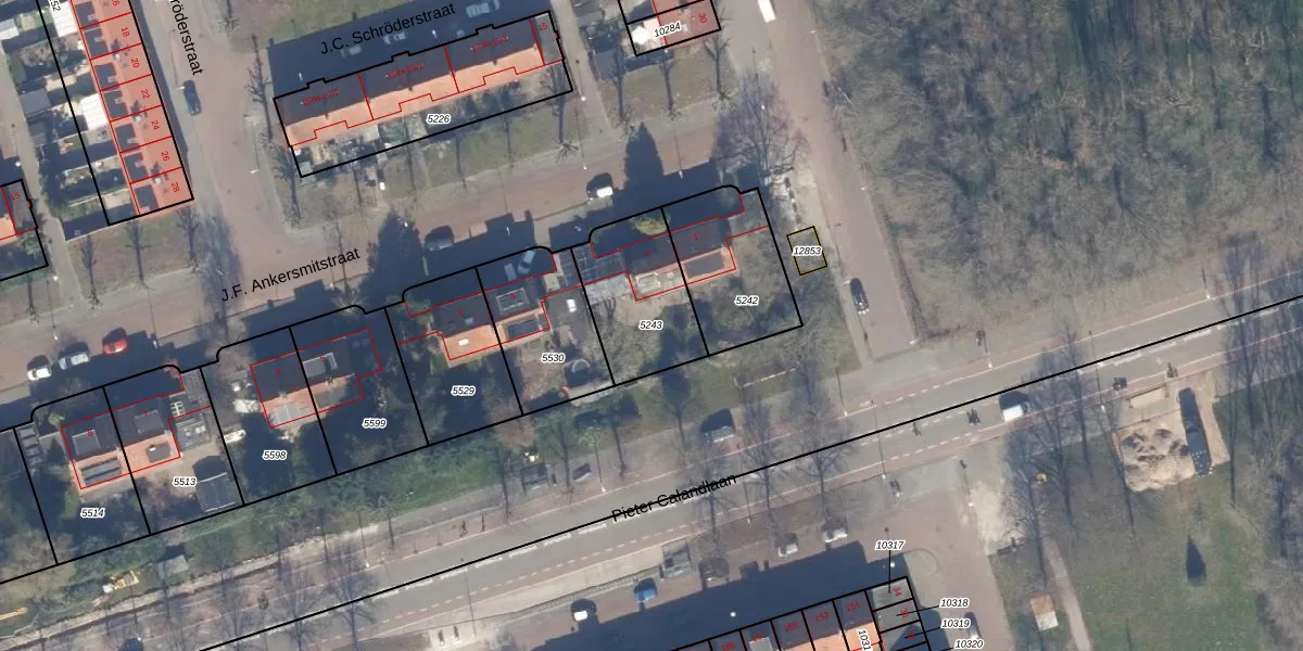 Gebruik de zoekbalk of klik op een perceel om informatie over het perceel te bekijken.
