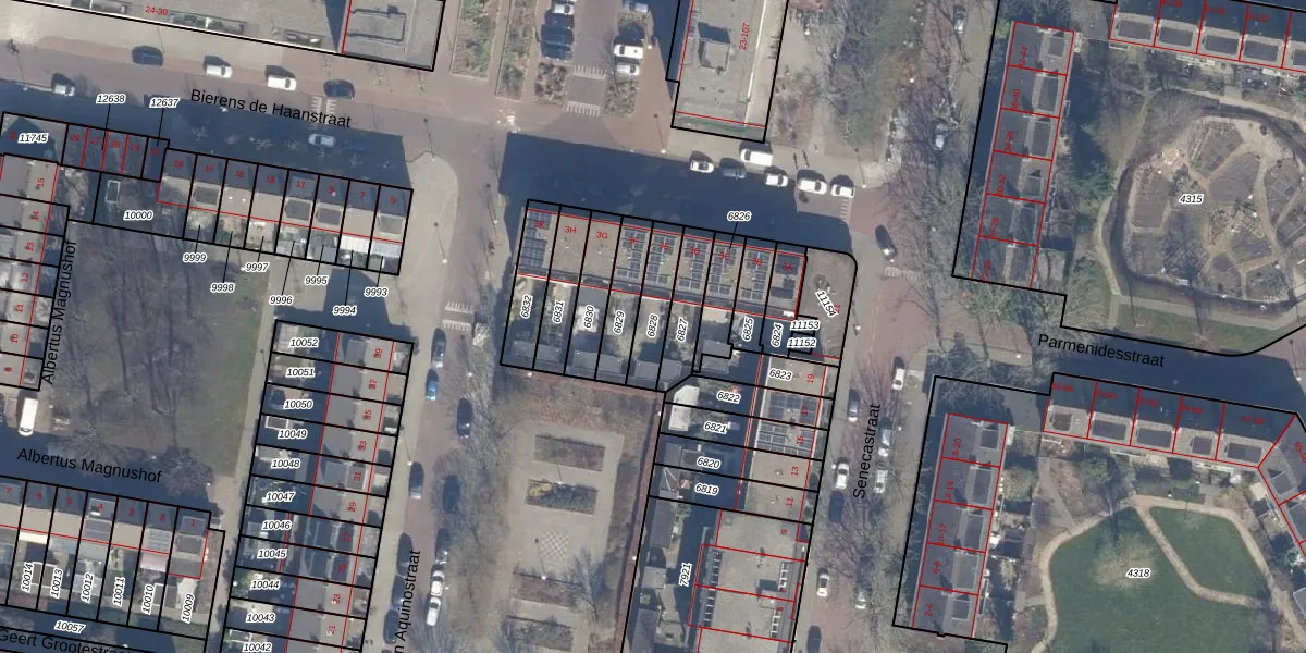 Gebruik de zoekbalk of klik op een perceel om informatie over het perceel te bekijken.