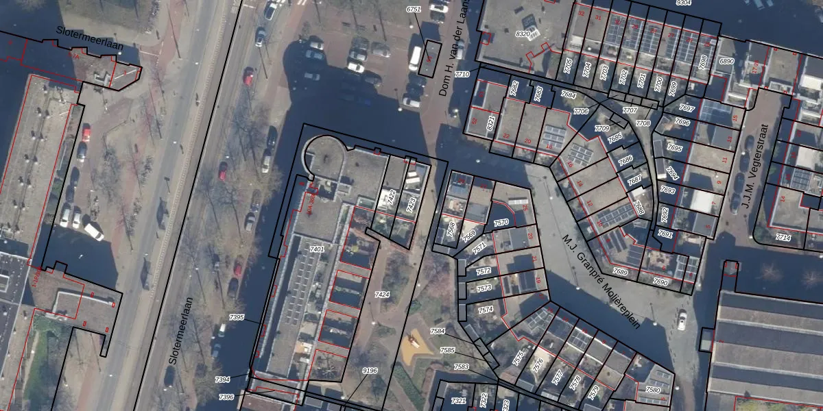 Gebruik de zoekbalk of klik op een perceel om informatie over het perceel te bekijken.