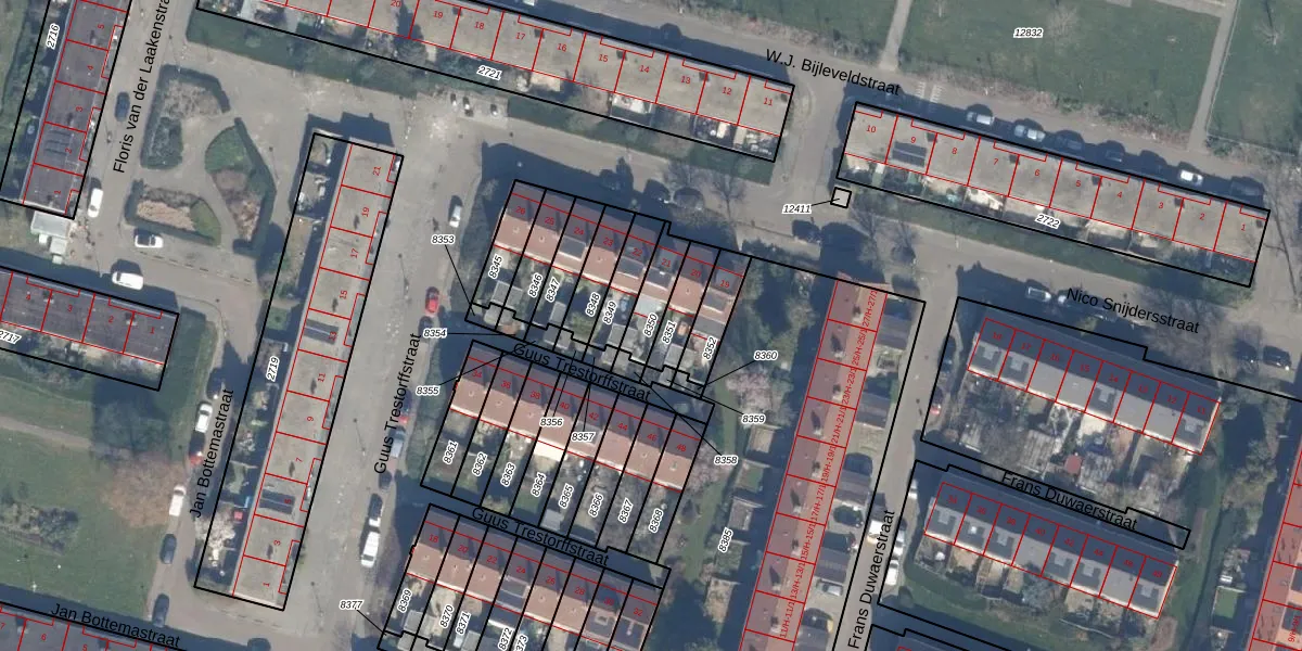 Gebruik de zoekbalk of klik op een perceel om informatie over het perceel te bekijken.