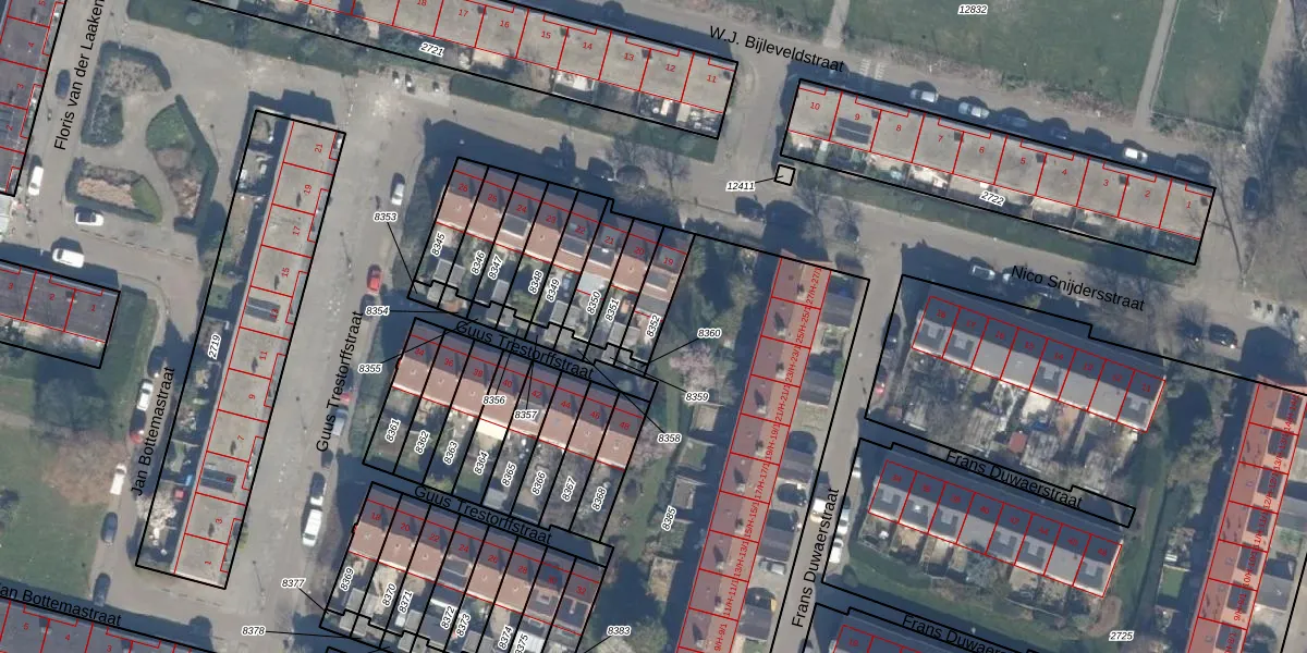 Gebruik de zoekbalk of klik op een perceel om informatie over het perceel te bekijken.