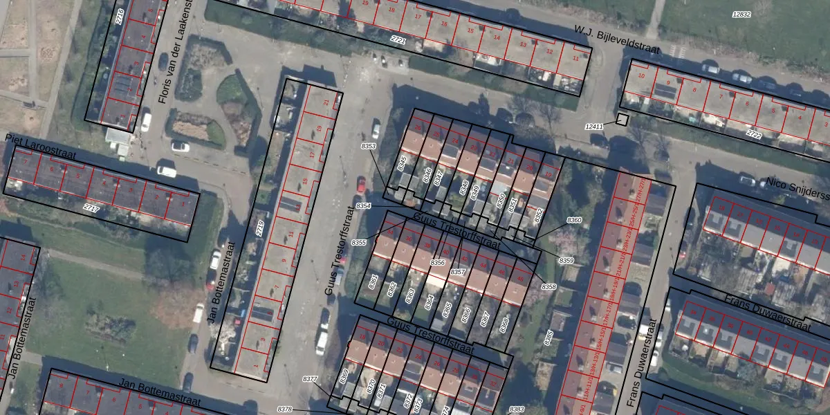 Gebruik de zoekbalk of klik op een perceel om informatie over het perceel te bekijken.